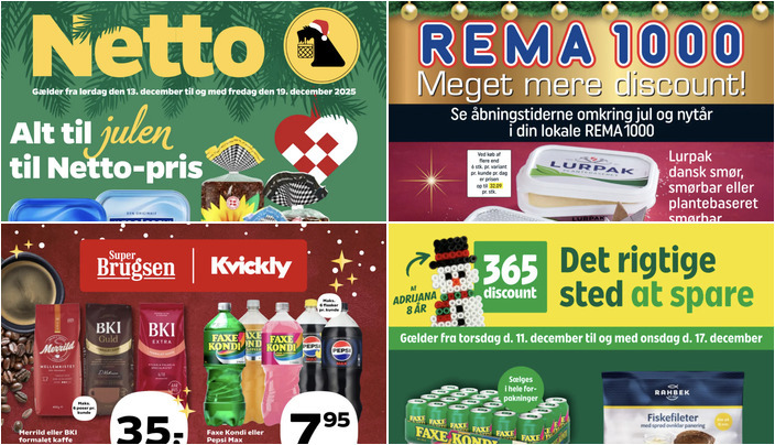Kvickly tilbyder Merrild eller BKI formalet kaffe i flere varianter (350-400 g) til kun 35 kr. pr. pose. Bemærk, der er et begrænset parti og maks. 6 poser pr. kunde. Tilbuddet gælder fra fredag den 12. december til torsdag den 18. december.