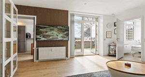 Beliggende på en større grund på 3.399 kvadratmeter giver ejendommen lidt rigelig plads omkring bygningen. Lejligheden er udbudt til prisen 2.348.000 kr., hvilket gør den til en mere overkommelig løsning i samme område.