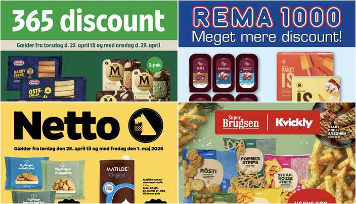 I Netto kan du vælge mellem kyllinge schnitzler, nuggets og burgerbøffer til kun 10 kr. pr. pakke (270-400 g). Tilbuddet gælder fra lørdag den 25. april til fredag den 1. maj.